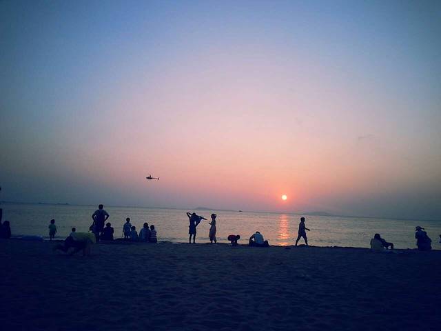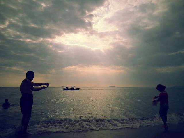 第一天我住在青年旅社的四人间。下铺是个十分活泼的长沙阿姨,现在我已经记不得阿姨的姓了,来的第一天就跟阿姨混了,阿姨带我逛了夜市,然后来到了这片海边静坐聊天,阿姨是个胆小的人,天黑了不敢下到沙滩里,被我哄骗了很久才坐过来,阿姨跟我讲了她这几天的行程,讲了很多她女儿、家里、工作的事,也许每个独自旅行的人都有故事与烦恼,在海滨的凉夜里,请都暂忘吧。