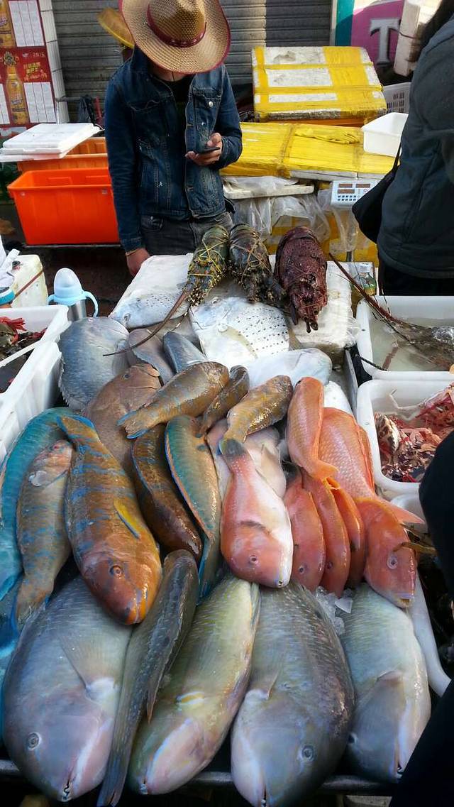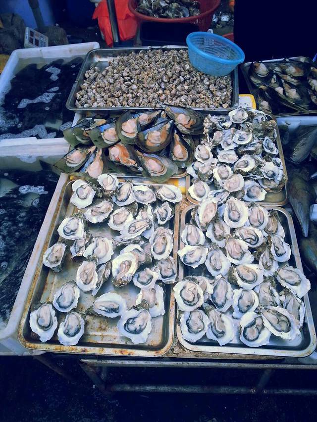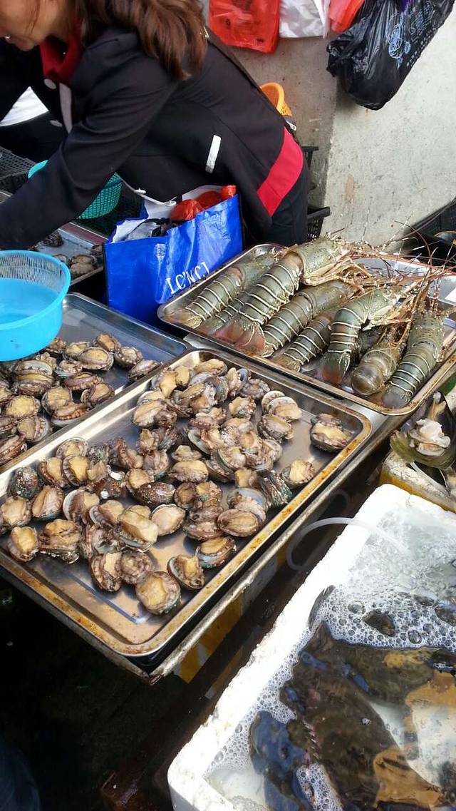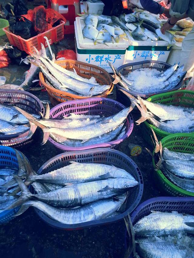 网上都是吃海鲜去第一市场,但现在的第一市场非常宰客,三亚当地朋友(阿伟,三亚当地人,从未出过海南岛)说,不远处的鸿港码头海鲜都是当天半夜现捞现卖的,灰常便宜,当地人都去。于是我就起了个大早~果然被玲琅满目的各种奇鱼子下了一跳。