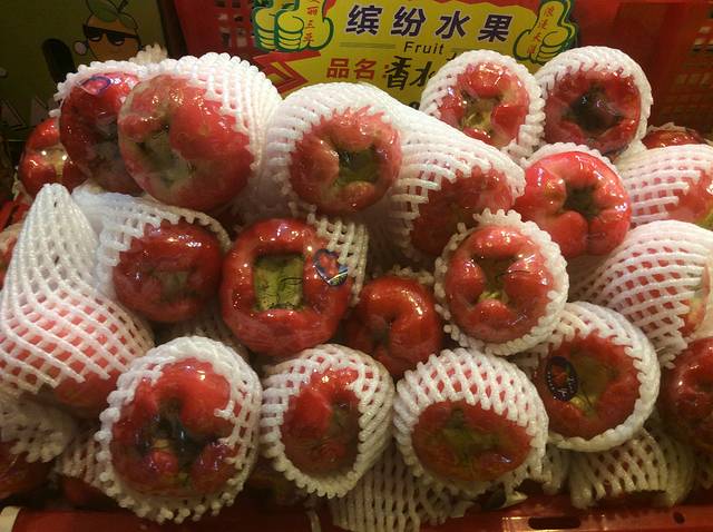 莲雾,自己吃品相就不重要了5块一斤,买回家建议买品相好的,最多也就15一斤。