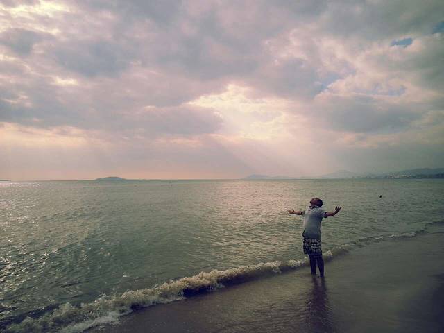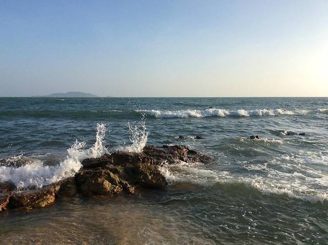 细细看去,每一片海滩都有自己的性格,就像每一片海都有自己的颜色。第一眼大海。浅蓝色。安安静静。朦胧美。挺好。
