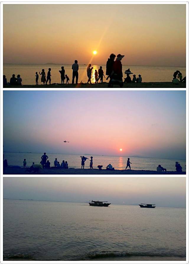光脚下海的人很多,大家各玩各的不亦乐乎,很快太阳下山了。傍晚的大东海广场,有中学排球队训练,各种广场舞也是纷纷占领了一片沙滩。在这生活算一种幸福啦~~