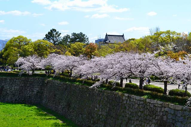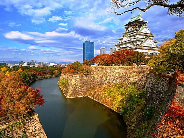 樱花季、红枫季时尤显古城风韵,登天守阁顶层,俯瞰大阪城