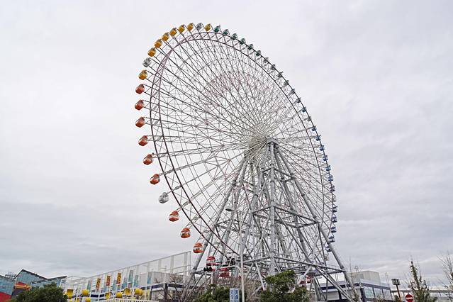 乘坐摩天轮将大阪港一览无遗,“流星雨烟花”彩灯图案无比绚丽