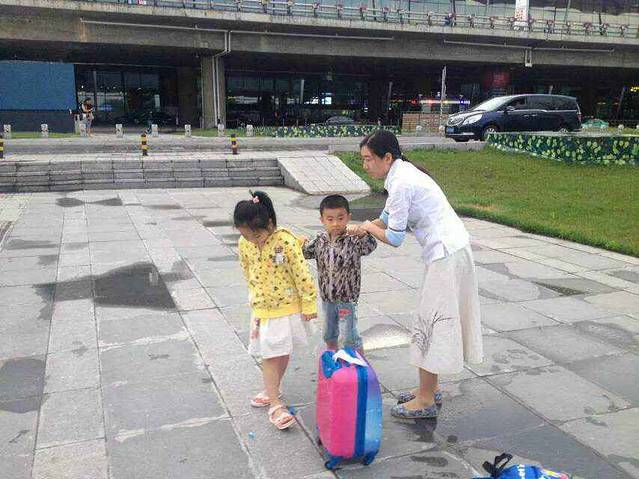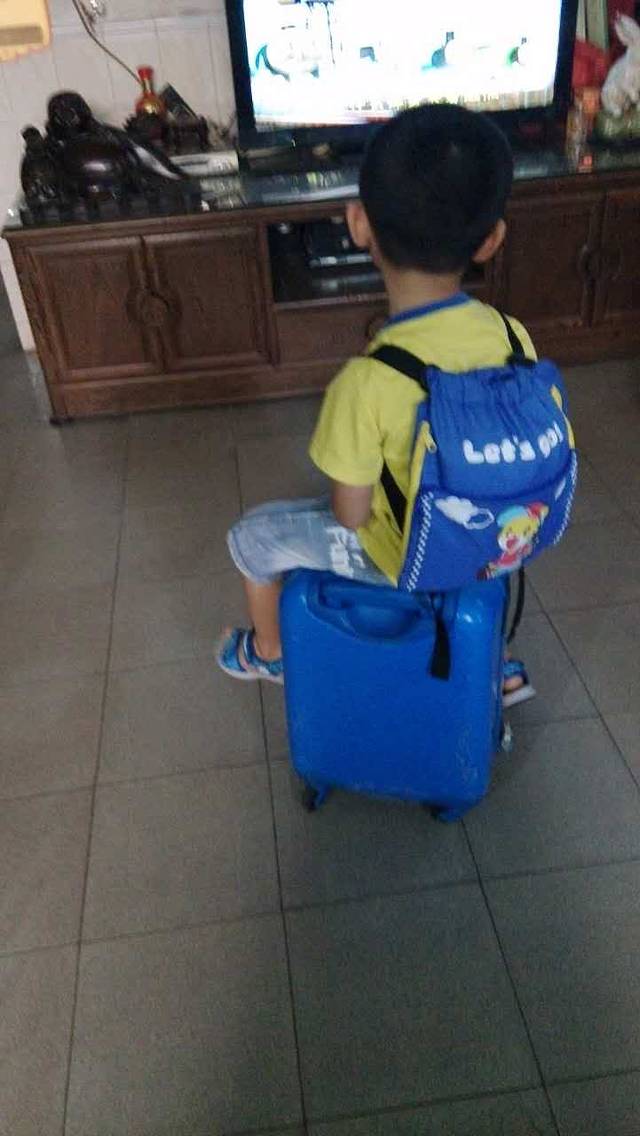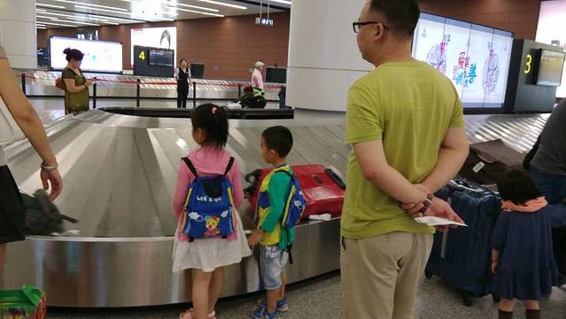 老公拖着彬和两个行李箱,我拖着轩和一个行李箱,一路小跑的往分流口跑去。路上轩说她实在跑不动了,我就拖着她快走。