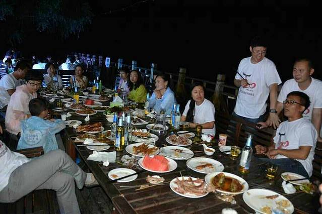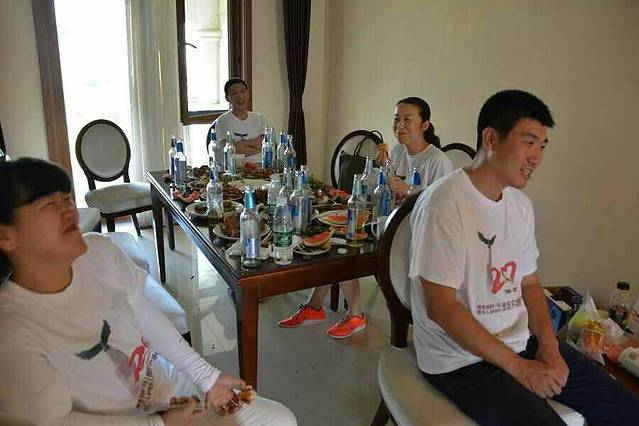 因为下午还有活动,所以大家就没怎么多喝,口渴的喝了些啤酒解解渴,等着晚上开大餐呢!
