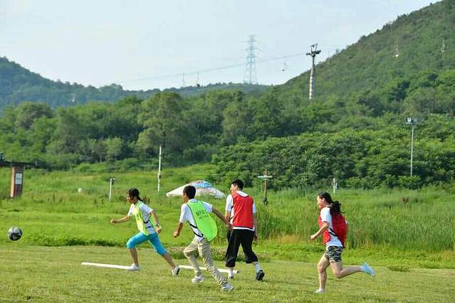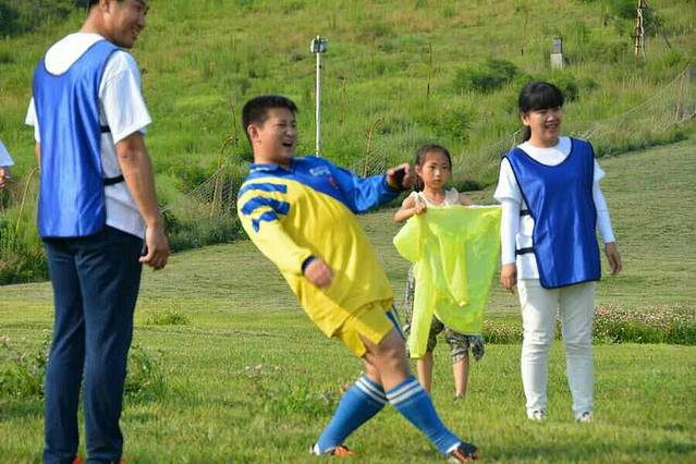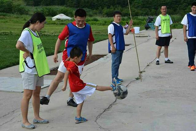 接下来到了踢足球环节了。在准备时还有一个小插曲。姐弟俩个在外面跑着玩时彬不小心摔了一跤,把嘴唇给磕破了。哄了好一阵子才过去。当初我们班男生也是比较喜欢踢足球的。我那时就是拉拉队成员。帮忙拿个东西或者提供水什么的,哈哈,相当有集体荣誉感。这场球也是我和老曹一再坚持要踢的,在群里坚持了很久。后来老曹私聊我说,其实这场球他本不是非踢不可的,不过大航的一句我就想回去和大伙儿踢场球儿让他很是伤感,所以不管怎样都要把这场球攉龙起来。对于足球,始终有一种特别的热爱,我自己也没清楚是怎么回事儿。高中就是主力拉拉队,上了大学仍然如此,那时就是老公的忠实球迷了。读研究生加入研总会也是报的体育部。毕业后老公所在的阳光队的大部分活动我也都有参加,再后来恒大的训练场就在小池塘旁边,连带家里两头也都是穿着恒大的球衣的。孔卡告别赛时两头都有去,他们还记得本杰明呢。提起大航没能参加这次聚会也是很可惜的。有十几年没见了吧。其实一早就知道他不会回来,不过当时在群里听班嫂说航子回来时,真的是非常开心的,以为他之前的计划有变呢。后来私聊他才知道不是。空欢喜一场,唉。等毕业二十年吧,看有没有机会见面。足球比赛先是3组和4组对战,其实他们两队可以说是专业赛,我们和1组是业余赛。不过专业赛没进球,反而是我们业余赛咱2组进了两个球,以绝对的优势赢了比赛。多亏了有欢子,真好使啊,哈哈!踢足球赛时,轩的温度开始起来了。后来我就一直呆在帐篷里陪着她。她和彬过了一会儿睡着了。最后2组和3组点球分胜负,3组胜出。