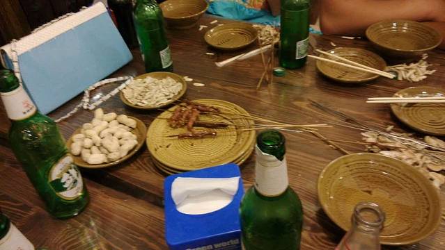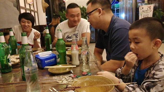 从老姑家回到铁岭已经是晚上十点多了,不过撸串儿是绝对不能错过了。味道真好!我在广东绝对吃不了这么多。平时不怎么喝酒的妹夫也陪老公喝了些啤酒。