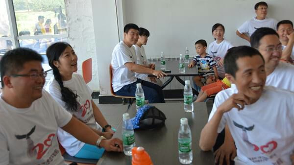 中午稍事休息后,大家又集中去玩游戏了。下午第一个项目是指压板。每组有一个被挑战队员,要和被挑战队员石头剪刀布,赢的有资格翻扑克牌,要按照顺序将扑克牌全部翻出的一组胜出。三组居然有弄到一支笔,所以他们的速度快很多。我们组开始是用手机记录的,而且报和记的信息都有些错乱,后来也找到了一支笔才比较快的完成任务。第一组又是最快的,他们的被挑战者是我们组的,后来方强说他有放水,见到孩子去了就直接翻了,哈哈。最后一组是老虎队,我们都休息了他们还在继续奔跑呢。应该和我安插了一个小间谍有关系,我看组员们都是抱着我儿子跑来跑去的,呵呵,辛苦大家了。大家结束游戏后都说脚底板热辣辣的舒服。两头也意犹未尽的又都跑了两趟。