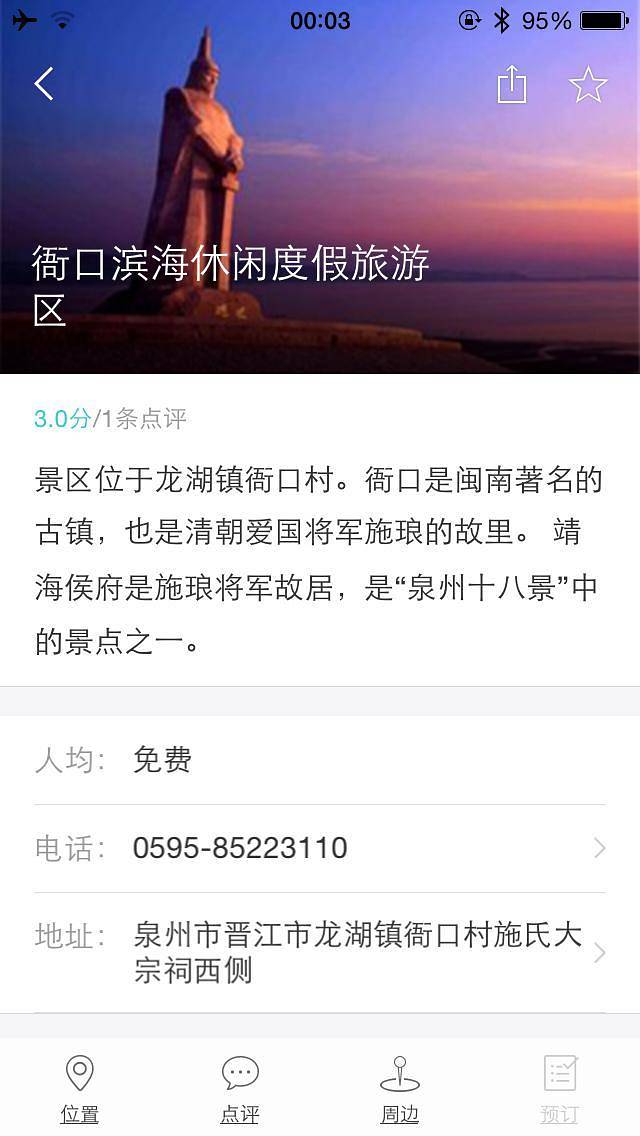 到了衙口村后,在村落里大概走了一下,首要任务想要找住宿的地方,因为背包好重(昨晚洗的衣服还没干呢),但是,没有!凭直觉走到沙滩附近,看到这家网友说的老字号芋圆店。先医治肚子~~才¥7啊!跟老板娘闲聊,问她怎么找住的地方(虽然店的旁边有家三星级的酒店,预计很贵),她建议我等她女婿回来,因为她不是本地人,店是女婿的,哈哈~~然后还很热情让我把衣服晾她那里,傍晚回去拿就可以了。好感动!!!大家记得去衙口要去帮衬她们家的店哦~~好吃好吃!然后,女婿肥来后建议我去施琅纪念馆看看,说方圆3公里都不会有酒店了。。。于是,我带着好奇的心就进村了,嘿嘿~