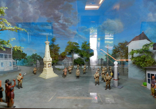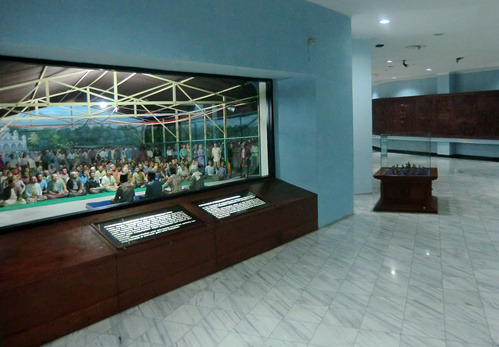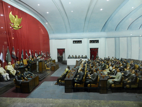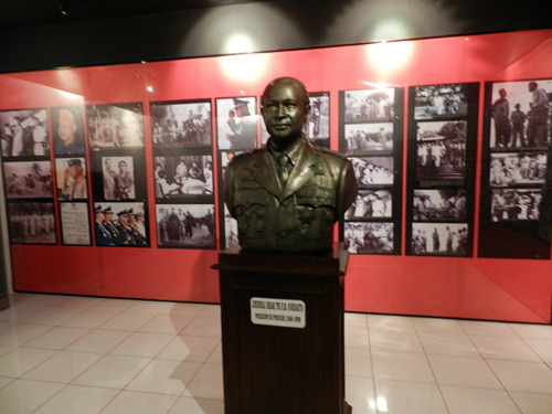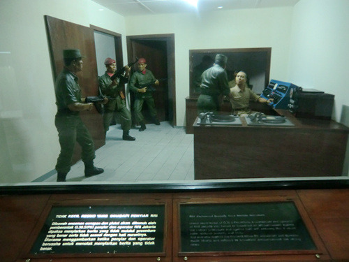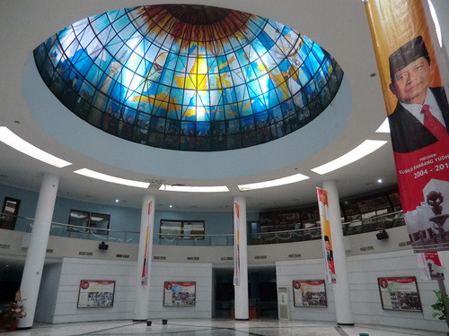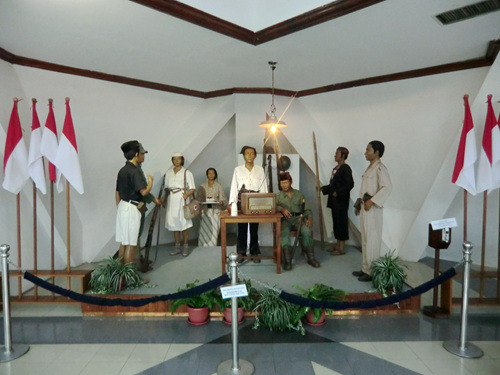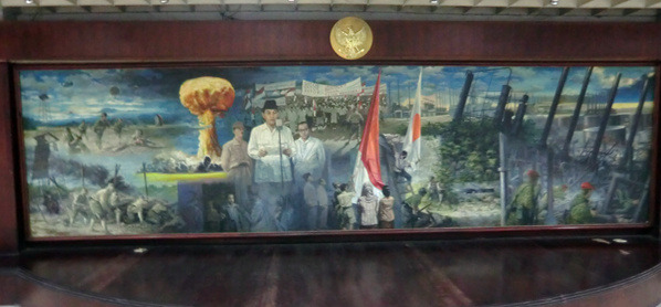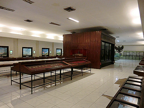 这家军事博物馆并未采用印度尼西亚博物馆里常见的缩微场景,而是类似其他第三世界的传统布置:高大的玻璃展柜里放着武器、制服、与军旗,墙上挂着地图与画像。这里并非只是介绍印度尼西亚独立战争,而是自独立战争以来的印尼军事通史:你在这里可以看到1965年那场疑云密布的军事政变(苏哈托成为了笑到最后的赢家),还可以看到印尼军队与共产党游击队的战斗(关于剿共有专门的整整两个展厅呢)。