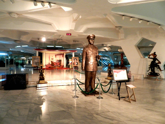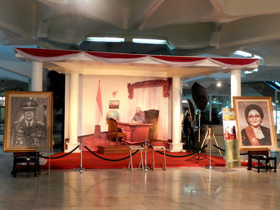 苏哈托执政时代的淫威能达到一个什么程度呢?看看这个纪念馆就知道了。除了简单介绍苏哈托的生平外,这里陈列着各界人等赠送给苏哈托家族的礼品,塞满了这栋三层大厦的每个角落,令人瞬间联想到了妙峰山的金正日礼品馆。这些礼品各式各样大小不等,有些来自国外,但绝大部分都是印度尼西亚国内的各路企业家赠送的,而且不少是来自印尼的华人财团……苏哈托对待华人有如牧人对待羊群一般,在剥夺其政治权力的同时,又坚决庇护华人这印尼经济大厦中的栋梁免受暴徒的袭击,当然保护费之类的剪羊毛是定然少不了的——这家纪念馆里就装了不少呢。
