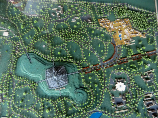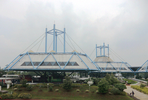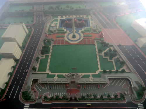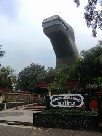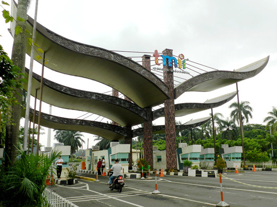 出得火车站,眼见得雨也渐渐变小了,那么接下来去哪里呢?翻翻计划列表,干脆把明天的印度尼西亚缩微公园提前到今天好了!印度尼西亚缩微公园位于雅加达遥远的东南郊区,交通很是麻烦:在快速9号线的终点站下车后再换乘小巴(车票4000印尼盾),告诉司机去“Tamanmini”即可。从独立广场计算全程大致要90多分钟——如果没堵车的话。小巴会停在一个丁字路口,从这个路口向里面走十来分钟就能到了。不过到达缩微公园之前,你会先在路口看到一栋莲花形的庞然巨物,那就是苏哈托纪念馆了——虽然它总是被粗心的游客们误认为是缩微公园的大门。这里门票高达24000印尼盾,如果拍照就还要再加5000。