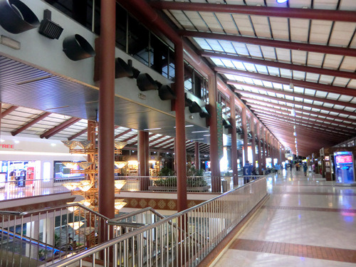 从北京到雅加达,俺们乘坐的是菲航班机,中途要在马尼拉转机。现在各国旅客在菲航转机已经不必办理过境签证了,但也不能离开机场,甚至不能在机场内部随意走动:机场工作人员会先将转机旅客们引到一小房间中登记护照,然后再通过专门通道分批次的将旅客送到各自航班的候机厅。既然是直接抵达候机厅,那么自然是没有什么免税礼品店了,只有几个卖食品的小摊。在此可得到一个经验:如果是在马尼拉机场的同一个航站楼转机,那么用不了一个小时也就足够了。