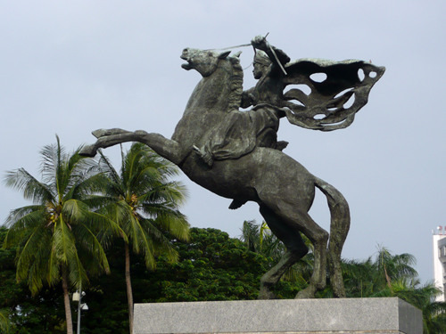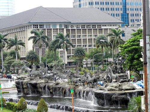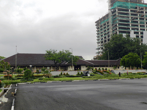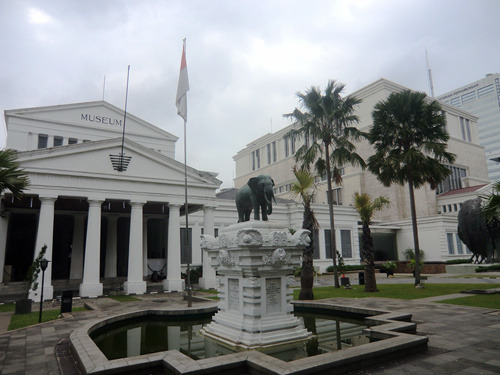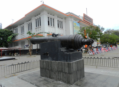 或许因为这里位于赤道以南,昔日的巴达维亚市政厅坐南朝北,现在是雅加达市博物馆,不知是改陈还是大修目前暂不开放。隔着广场在北侧与市政厅遥遥相望的是哥打邮局,邮局旁边那门铸着不雅手势的大炮是荷兰从马六甲的葡萄牙人手里抢来的战利品,据说在过去印尼妇女深信骑在这门大炮上便可生子,不过眼下大炮已经被铁栏围了起来,再也骑不上去了。