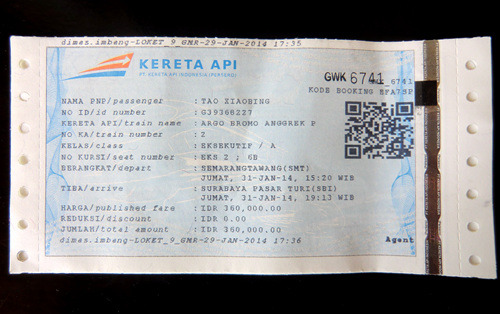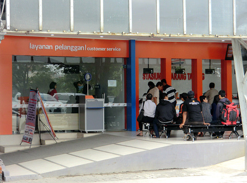 在火车站里等了半天,还是不见火车进站,车站广播也只是一再通知火车晚点,却不知到底何时能到。从九点多等到十点多,又一直等到了十一点,已经比原计划晚了整整3小时了,火车还是没有抵达的迹象,没奈何看来只有舍弃万隆了。于是来到火车站的服务窗口,道明来意后没有任何麻烦,服务人员干净利索的就退掉了几天前预订的车票,连一分钱的手续费也没收。顺便一提,这天晚上看新闻才知道,雅加达与万隆之间茂物那段的铁路已经被大水冲毁了,没继续等下去还真是明智之举。