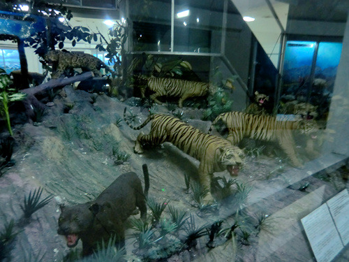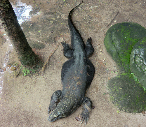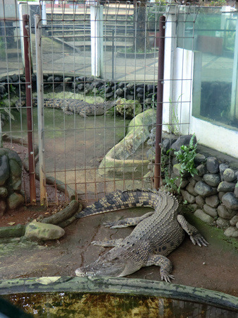 邮政博物馆的西侧是一条恐龙……哦,不对,是一个大蜥蜴模样的博物馆,这个模样最为古怪的博物馆就是门票15000印尼盾的科莫多龙博物馆。在博物馆的展厅、也就是这条大蜥蜴的肚子里,你可以看到包括苏门答腊虎在内的各种印度尼西亚野生动物标本;而在博物馆的园林内,则可以看到各种活生生的爬行动物。当然了,顾名思义这家博物馆的压轴好戏是大名鼎鼎的科莫多龙,在园林的最内侧便可以看到这种已知现存爬行动物中接近恐龙的大蜥蜴,所以你就不必再特意往努沙登加拉的科莫多龙自然保护区跑一趟了。不过希望越大失望越大,真的看到久仰大名的活生生的科莫多龙,反倒没有那种想象中的震撼与兴奋了——看着也不比鳄鱼威武太多嘛。