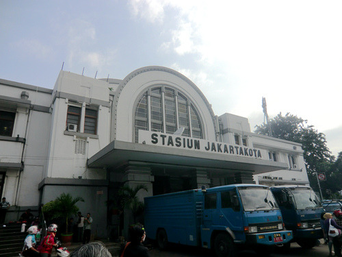好在到了早五点,通往市区的机场大巴便开始运行了,终点是雅加达市中心的火车站Gambir,车费30000印尼盾,如果路况良好的话需要一个半小时,而如果遇到名震天下的雅加达大塞车……那就只有天知道了。雅加达坐南朝北,地势北低而南高与北京刚好相反,南部为新城,而北侧临海一面则为老城哥打,也就是荷兰时代的巴达维亚。连续数日的暴雨使得地势低洼的老城洪水泛滥成灾,虽然昨日大雨转小小雨转停使得水势稍减,但部分地区仍然路面积水。俺们预订的旅店Hotel 55属于广义上的哥打老区,紧邻火车站jayakarta,从谷歌地图上看起来交通极为便利,可真到了地方才发现自己实在大错特错:这里向北到不了哥打kota,向南到不了中心站Gambir;而如果从中心站出发乘火车也同样无法抵达哥打……于是雅加达市内的火车线路到底是为何而设置的呢?!