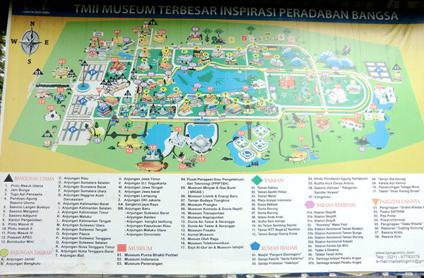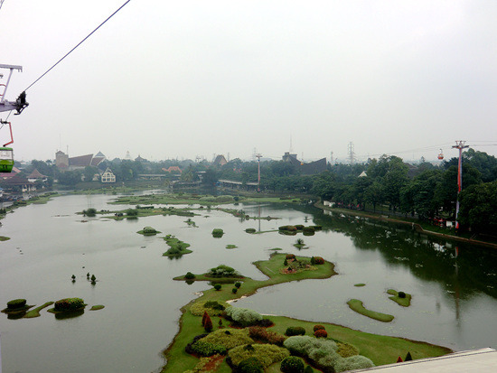出了苏哈托纪念馆继续向东,走个一两百米就到了印度尼西亚缩影公园了,这里门票要10000印尼盾。在这里,你可以在一天时间里了解印度尼西亚的岛屿。这个了不起的公园建于上世纪七十年代,面积达到100公顷,明显分为内中外三部分。公园的最内中央是个人工湖,里面堆砌出了印度尼西亚群岛的轮廓。要想一览全貌,只能选择乘坐公园内的缆车,往返要30000印尼盾。