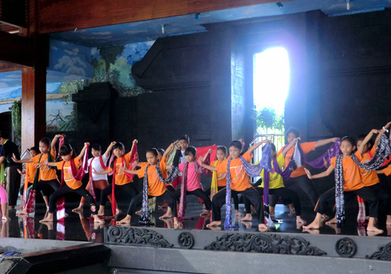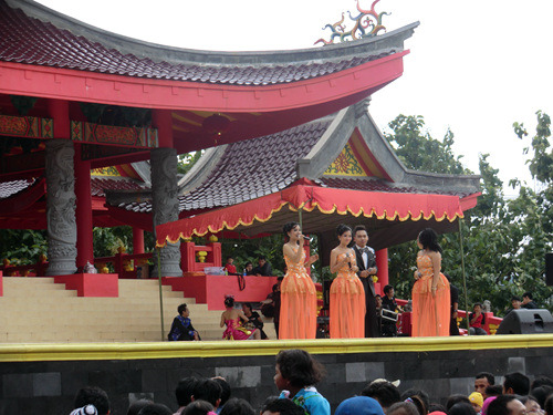 人工湖四周的中环划分为27个相对独立的区域,代表印尼的27个省,如中爪哇区、巴厘区、日惹区等,每个区都按照1:1的比例盖起了当地传统建筑,以及当地的重要地标(比如中爪哇区就有婆罗浮屠的缩微模型)。在上午10点前后大部分区域会有各种文艺演出(多半是歌舞),而如果是像俺们这种下午抵达的,便只能看到彩排了。一般来说每个区内都有一个展览馆,介绍本地区的历史与传统文化,这倒有点像世博会中国的各省展馆了。哎,世博会结束后各省展馆各回各家了,而深圳锦绣中华之流一来规模太小二来文化味儿不够,俺们中国现在就是缺这么个全面介绍各省份特色的永久性缩微大公园呢。