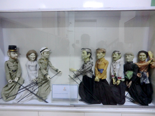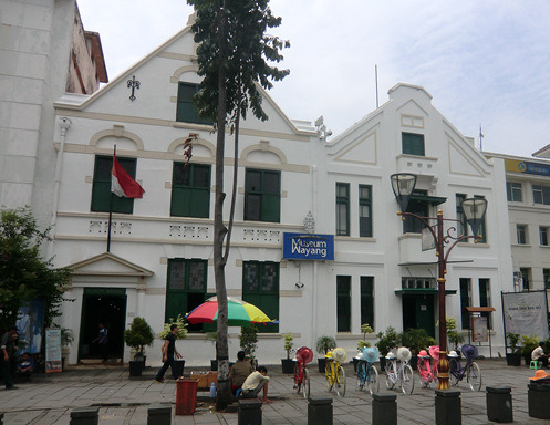 广场西侧当年是教堂,现在则是深受外国游客特别是西方游客欢迎的木偶皮影博物馆(Museum Wayang),门票5000印尼盾。印尼传统的木偶与皮影最早是用于祭祖,在发展过程中深受印度教等外来文化影响——所以其主要题材是《罗摩衍那》与《摩柯婆罗多》,即使如今的印尼乃是一个伊斯兰教国家,人民群众对木偶与皮影这种异教文化的艺术仍喜闻乐见。木偶与皮影可能是爪哇乃至整个印度尼西亚最富裕传统民族特色的物品,俨然成了印尼的国家文化名片兼特色旅游商品——无论在机场的免税商店、旅游景区的街头摊贩、亦或是这家博物馆的小卖部,木偶与皮影及其各种周边产品的身影无处不在。说起来俺天朝的皮影戏艺术那也是源远流长博大精深,但却就是达不到印尼皮影这种文化象征的地步,商品化程度亦远远不足了。在这个博物馆除了那些长鼻细臂的印尼木偶之外,还可以看到来自世界其他国家的木偶。