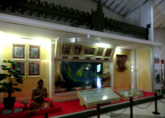 缩微公园人工湖南侧也是一字排开若干个博物馆,最东边的是门票5000印尼盾的邮政博物馆。这是一栋爪哇传统风格的建筑,在展室的正中央复原了一家邮局——也不仅仅是复原,你真的可以从这里给自己发一封明信片。和所有国家的邮政博物馆一样,这里介绍了印度尼西亚邮政史的发展,虽然博物馆里将历史一直追溯到了古代,可真正意义上邮政系统的建立是荷兰殖民时代的事情了。当然了,这里最大的看点是各种邮票,从荷兰殖民时代直到当代,你在此可以看到这个国家使用过的所有邮票,也包括那个短暂的日占时期。