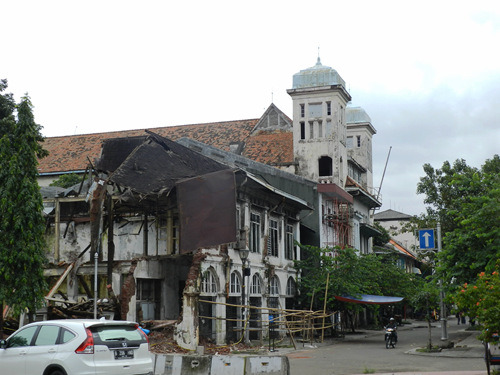雅加达的哥打老城区这个东南亚的阿姆斯特丹同样河道纵横,两岸荷兰殖民时代的历史建筑成排连栋,简直与荷兰的正牌阿姆斯特丹简直难分伯仲……才怪!或许是因为适逢雨季之故,各条河道中污水满溢,散发出阵阵那种滨海垃圾所特有的恶臭,而两岸的殖民时代老建筑状况好些的已经被雨水冲刷的斑驳脱落,状况糟糕点的则干脆就只剩下几面墙了。当然,也不止一个雅加达的哥打,印度尼西亚其他城市的老城风貌也多半如此。也正是因为这些老城保存现状普遍堪忧,所以印尼虽然不乏殖民时代建筑,但却没有一个老城如澳门、马六甲一般荣登世界文化遗产名录。