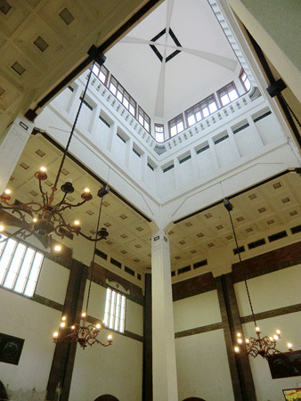今日哥打老区旅行的起点站是曼迪利银行博物馆(Museum Bank Mandiri),也就是与哥打火车站隔街相望的那栋巍峨的西洋风白色大厦。曼迪利银行是目前印度尼西亚规模最大的银行,但眼前这栋巍峨的大厦却并非自古以来就是发展银行的总部,这是荷兰殖民时代的银行,印尼独立后才收归国有,现在则改建为博物馆,年的彩色玻璃现在仍有保留。这里介绍了始于殖民时代之前的印尼金融业的发展史,陈列略显陈旧,或者说有那么股子国内上世纪八十年代末博物馆陈列的风骨。