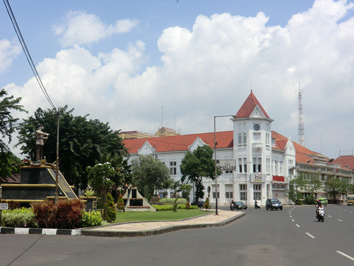 日惹的飞机场位于日惹与梭罗之间,城际铁路专有一站Maguwo,从日惹出发大致需要20分钟,车费每人10000印尼盾——其实如果一直坐到日惹也还是这个价钱。日惹的机场费为35000印尼盾,与印度尼西亚重点旅游城市的地位相称,日惹机场虽然比之雅加达机场有所不及,但也是相当现代而又不失爪哇传统风格,远胜三宝垄的飞机场了。经过不到一小时的晚点与超过一小时的飞行,俺们又回到了阔别数日的雅加达,阔别数日的哥打城区,以及阔别数日的Hotel 55。