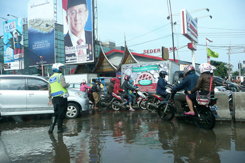 时为雨季,雅加达部分地区惨遭水淹