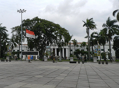 广场的东侧有一花园,门票5000印尼盾的雅加达美术馆便在其内。从外面看起来这栋当年的荷兰司法部洋房高端大气,但除了海捞瓷展厅外,这里的展品多少有点令人失望:印尼传统美术品极少,倒是挂满了现代派的无聊绘画,远不如建筑本身更有看头——比如那个华丽铁艺装饰的老楼梯。