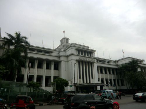 无论如何,印度尼西亚毕竟是东盟的老大,爪哇是这个区域性三流强国的首善之地,雅加达又是首善之地的首善之区,能看得出当局对哥打老区的保护与整治比较也还是下了一番功夫的。所以自哥打火车站与银行博物馆前的那个广场(也就是快速公交专线1号线起点站的位置)开始,老城颓败的面貌便陡然一变,颇有那么几分时光倒流的意味了,只是这个路口川流不息、哦、川流不动的摩托车流瞬间又将此处由历史的天国打回了亚洲发展中第三世界的尘世。