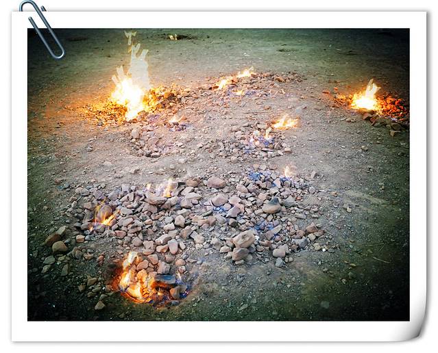 这个照片中,左边是燧人氏训火,点燃人类的希望。右边是男人在岩石星空下沉思,诞生智慧。