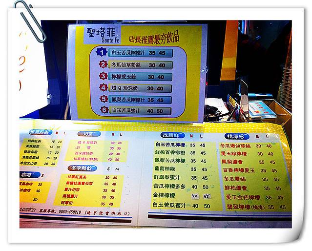 这是攻略里推荐的圣塔菲 白玉柠檬苦瓜汁,位置就在官芝霖的旁边,呵呵,吃完辣豆腐,喝杯酸甜的苦瓜汁,哈哈,爽歪了。我承认,我又喝了两杯。好像它其它的饮品也不错,建议各位勇敢尝试。恩,俺还吃了鸡腿卷,懒人虾,炸大鱿鱼等,话说俺的战斗力还真不行。看着香喷喷的起司马铃薯,愣是吃不下去了。唉,不到台湾夜市不知道自己胃口小啊。恩,逢甲夜市相对于台湾其它的夜市,价格大概是最便宜的,呵呵,但是物美价廉。建议大家中饭最好不要吃了,争取在夜市里多吃点。嘻嘻