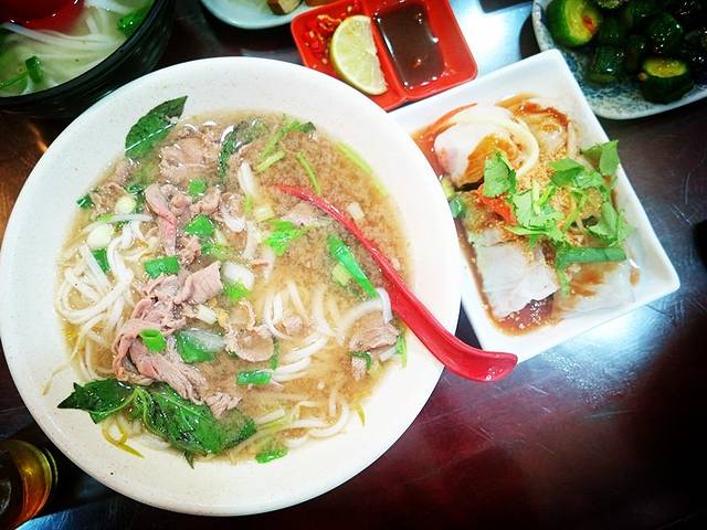 中午饭是在金山老街吃的,发哥推荐的一个馆子,味道很好啊。俺们点了越南牛肉河粉、贡丸河粉,还有几个小菜-凉拌越南春卷,烫青菜,螺蛳,一共360台币,称得上物美价廉啦。