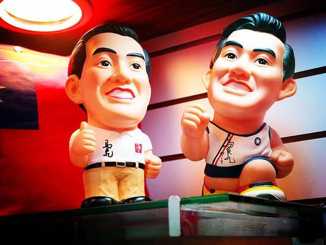最后一站是淡水,本来发哥是让我们自己在淡水逛够了,再坐地铁回去。另外那对情侣就住在淡水了。不过那天好像是个什么节,淡水地铁站人挤人,我们索性就搭发哥的车回台北。顺便去他的店里扫荡。俺们就像蝗虫过境一样,各种纪念品,杯子,围巾,冰箱贴,钥匙链,领袖公仔。。。。。。看见啥都买。最后我差点想把发哥的镇店之宝,马英九亲笔签名的公仔搬回家。发哥的脸都要绿了,哈哈。