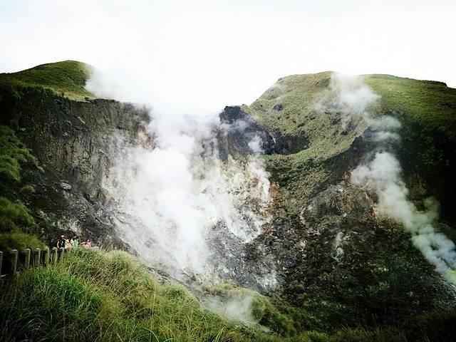 看见白色烟雾中的黄色没有,我猜那就是硫磺啊,怪不得阳明山有温泉那