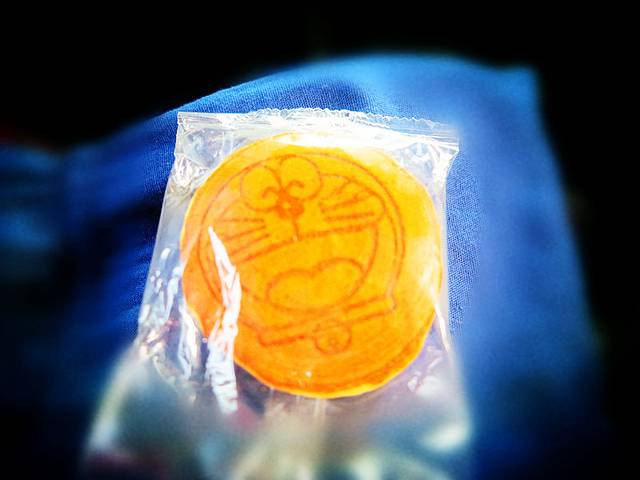 同车的MM很窝心,听说我没去成机器猫展,便送给我她在展览上买的机器猫蛋糕,味道真好啊。