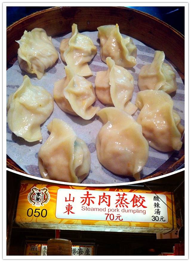 这个山东赤肉蒸饺,却是本次台湾之旅的亮点。蛐蛐作为一个典型的北方人,对这个蒸饺是赞不绝口。回到北京后还是念念不忘,常常叨咕要回台湾狂吃这个。所以我们吃了好几屉蒸饺,极大的消弱了继续狂吃的战斗力。恩,这家的酸辣汤也不错,很好喝啊。据说这个山东赤肉蒸饺的品牌创立于50年前,之所以好吃,是因为老板用新鲜猪后腿肉做馅,几乎没有肥肉,而且绝不用隔夜馅,剔筋后绞肉,加上高丽菜和麻油,口感丰润结实,异常鲜美啊。哈哈,俺和蛐蛐都强烈推荐。
