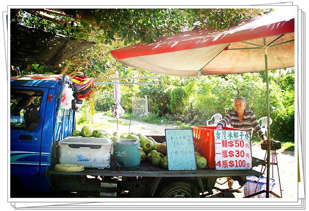 从台北到高雄,高铁不过1个半小时。我们下车后顺利和接车司机接头成功。这是请垦丁海之恋民宿的老板娘紫婕帮忙安排的,从高雄左营到民宿,每人400台币,因为是春节期间,若是平时,350台币就够了。高雄左营到垦丁开车需2小时左右,途中停车休息,司机大哥带我们到一个水果摊,免费品尝水果,老板人很好,一个劲说不买没关系,尝尝当地的水果吧!