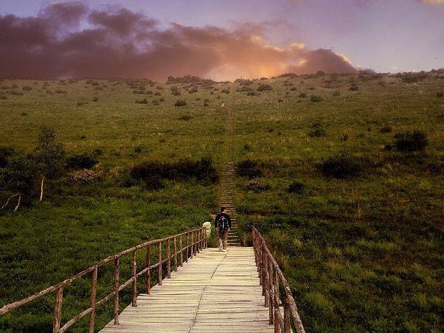 古栈道,彩霞满天,步入五彩梦想的尽头。