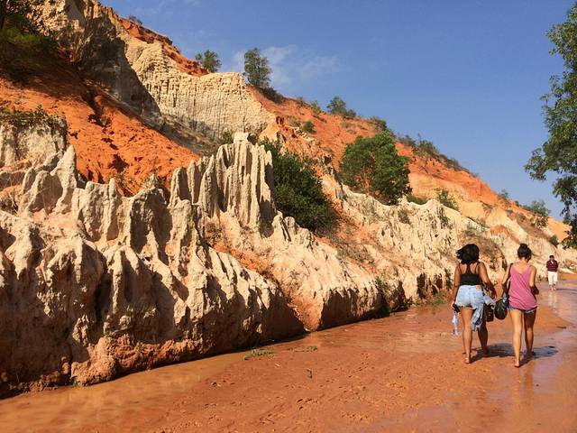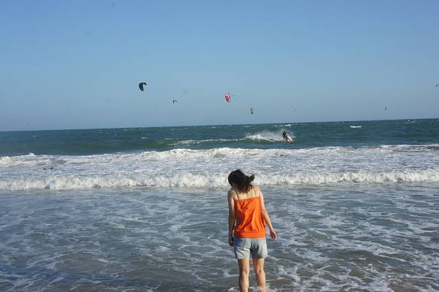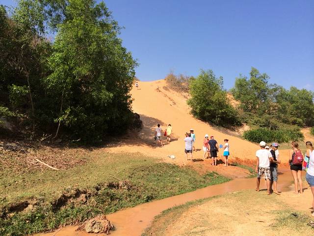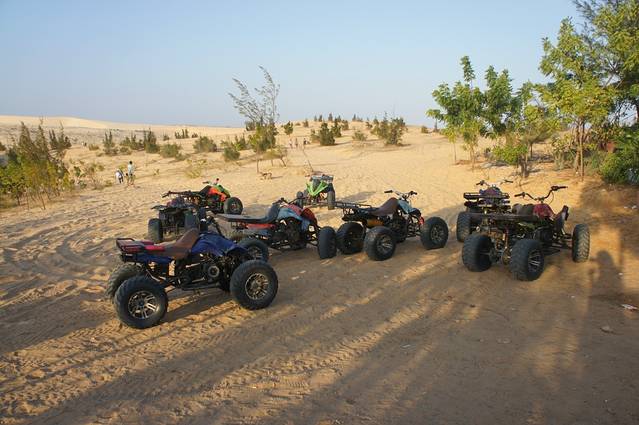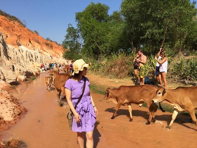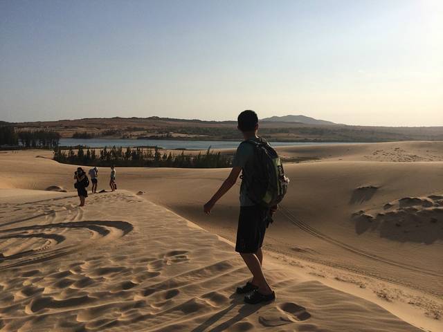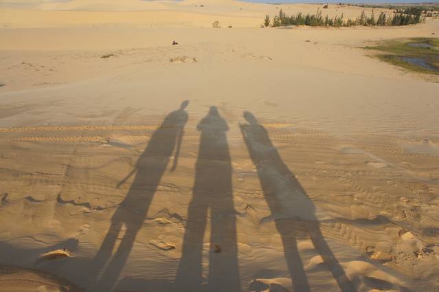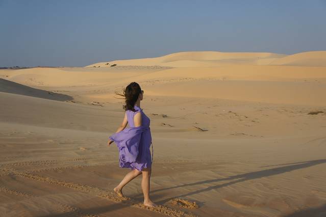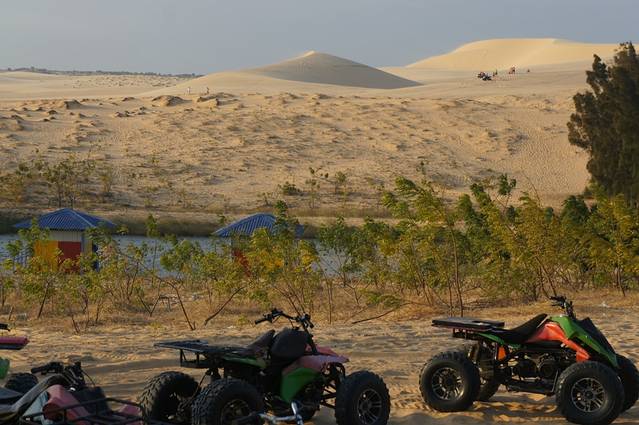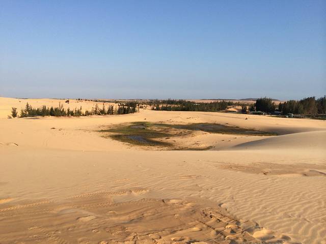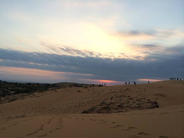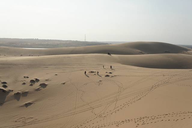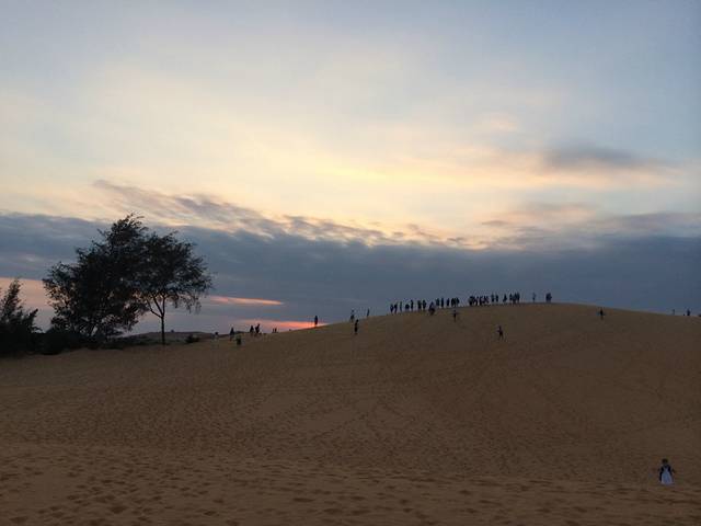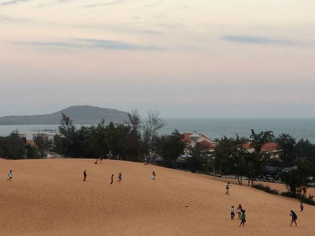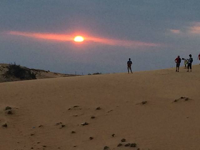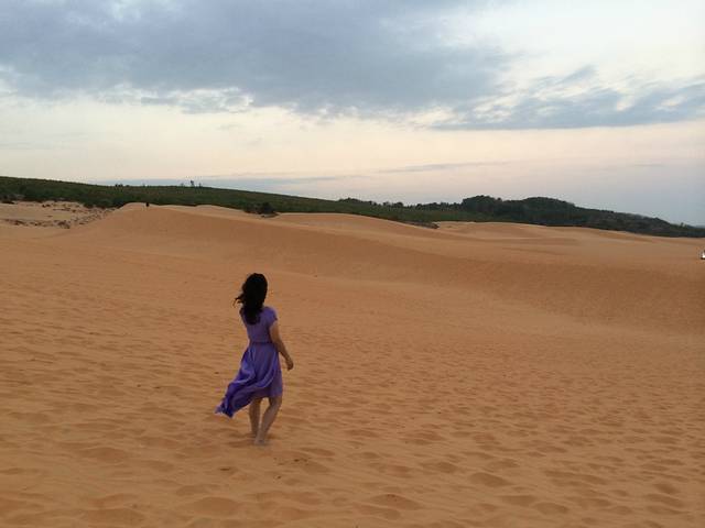 沙地摩托,50万/2人,借了2辆,大PP带东东一辆,我一辆。真心不好开,在一边教我的当地小伙子索性让我坐在后面,他来驾驶。他开起来当然驾轻就熟,在沙丘上横冲直撞,行驶到沙丘的最高处,一下子俯冲下去,吓得我尖声惊叫,非常的刺激。他也会停在风景好的地方让我们拍照。服务不错,自然要给小费。但在我给他之前,他自己先开了口,而且要20万,经过讨价还价最后给了他10万。这是我在越南遇到的唯一一次不愉快的经历。