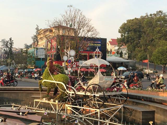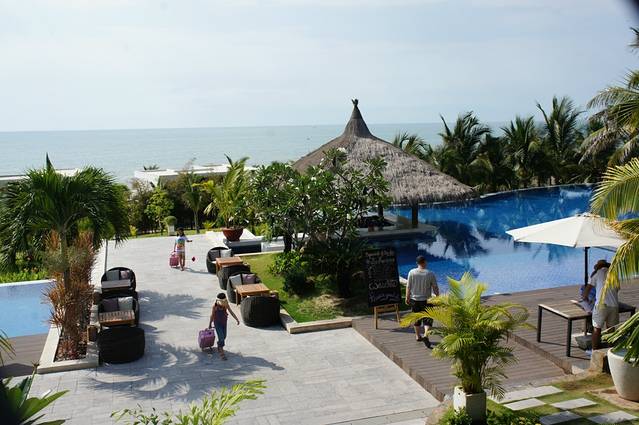 本来想在网上订新咖啡的open bus,从大叻去美奈,可不知道为什么下午1点的班次没有了。入住酒店后让前台的员工帮我们订,他们跟我们说现在是假日前夕,大巴票很紧张而且很挤,建议我们包车。果然是遭遇春运了。包车的价格是120美金,车子是丰田的越野车,感觉还可以就订了。包车比较自由,我们订了下午2点出发,所以白天有很多时间可以在酒店里闲逛。
