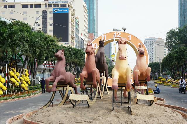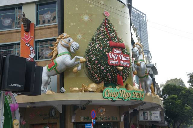 LE LOI是胡志明的主干道,马路两边有很多的商铺,琳琅满目。可能临近春节,节日的喜气随处可见。