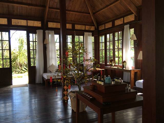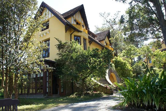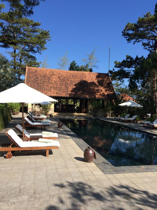 大叻别墅酒店赞一个,20多幢别墅散落在树林中,房间的布置非常原生态,木质的旧家具古色古香,非常有味道。