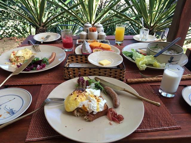 悠闲地吃个早餐,在酒店里到处闲逛,拍照,在沙滩上晒晒太阳,游游泳,完全的度假模式。