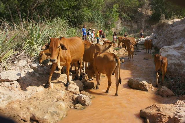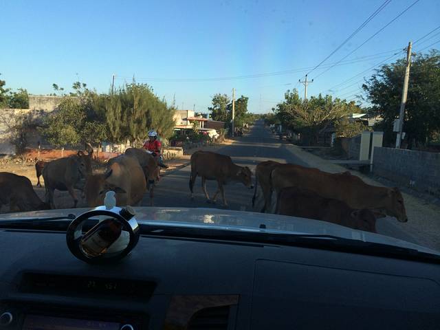 偶遇一群牛跟在我们后面,大PP嫌脏再不肯往前走了,说不要不小心踩在牛粪上。东东倒是兴致极高。