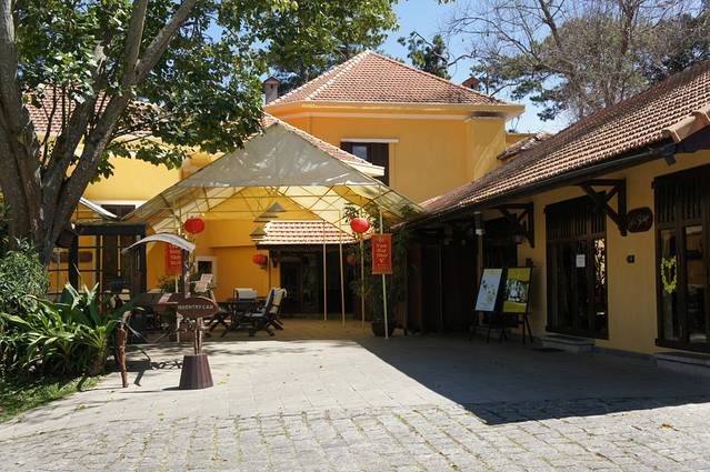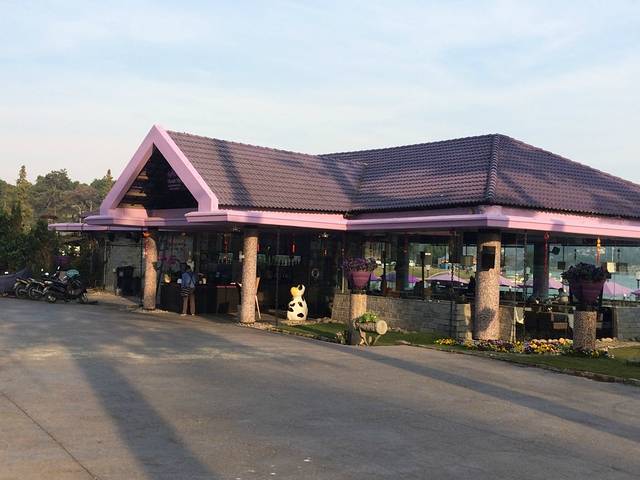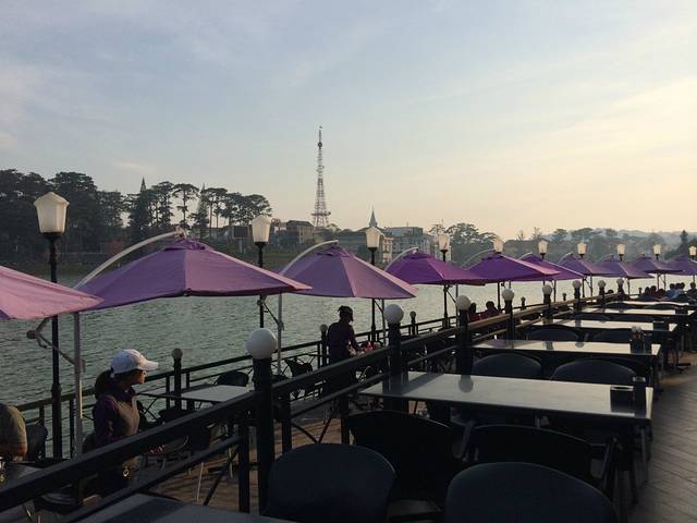 缆车站比较偏,没有taxi等候,可以请小卖部的售货员帮忙打电话叫车,越南人民还是很友好的。从禅院出来本来想先去春香湖走走,然后去吃下午茶,可2个男人都不肯走路,于是taxi就直接停在bluewater了。Bluewater,紫色的房子,在春香湖边上非常显眼。