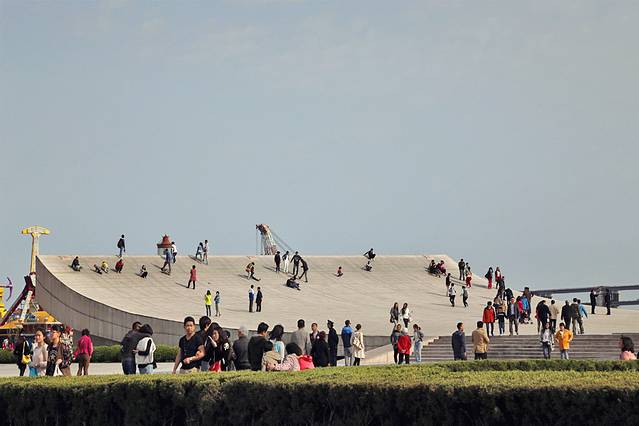 一块巨大的碗状石板,是专门搞竞技飞车或滑板的?看来觉悟还不够高...这叫书形广场,寓意着百年后的大连又翻开了新的一页!