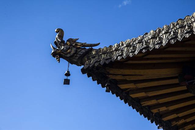 房角的护兽,还真不知是什么动物的造型,像狮子,也像是狗。