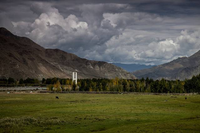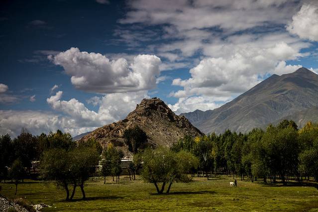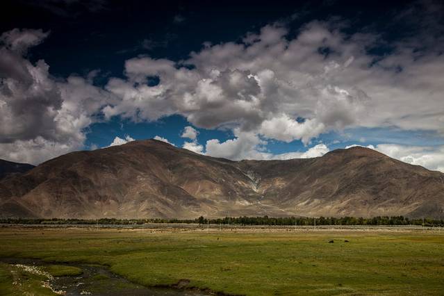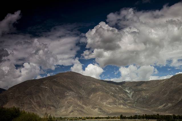 回程最可惜的还是在拉萨河谷地带,在公路边能够看到几处非常好的风景,秋天的杨树,树叶黄得是那么的鲜亮,成片的杨树映在拉萨河里,非常漂亮,但是,司机不停车,你一样是没有机会。也曾看到几位开车的人,把车开到了河滩里,拿着相机在拍照。这里不得不羡慕自驾游的人,自由,随意,可以肆无忌惮地享受西藏的美景。